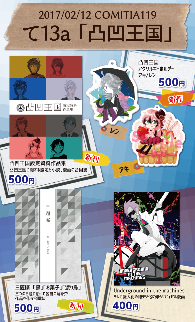 絵の二人が出る三題噺と、凸凹王国っていう中学からの友人たちと共有世界観の創作。
